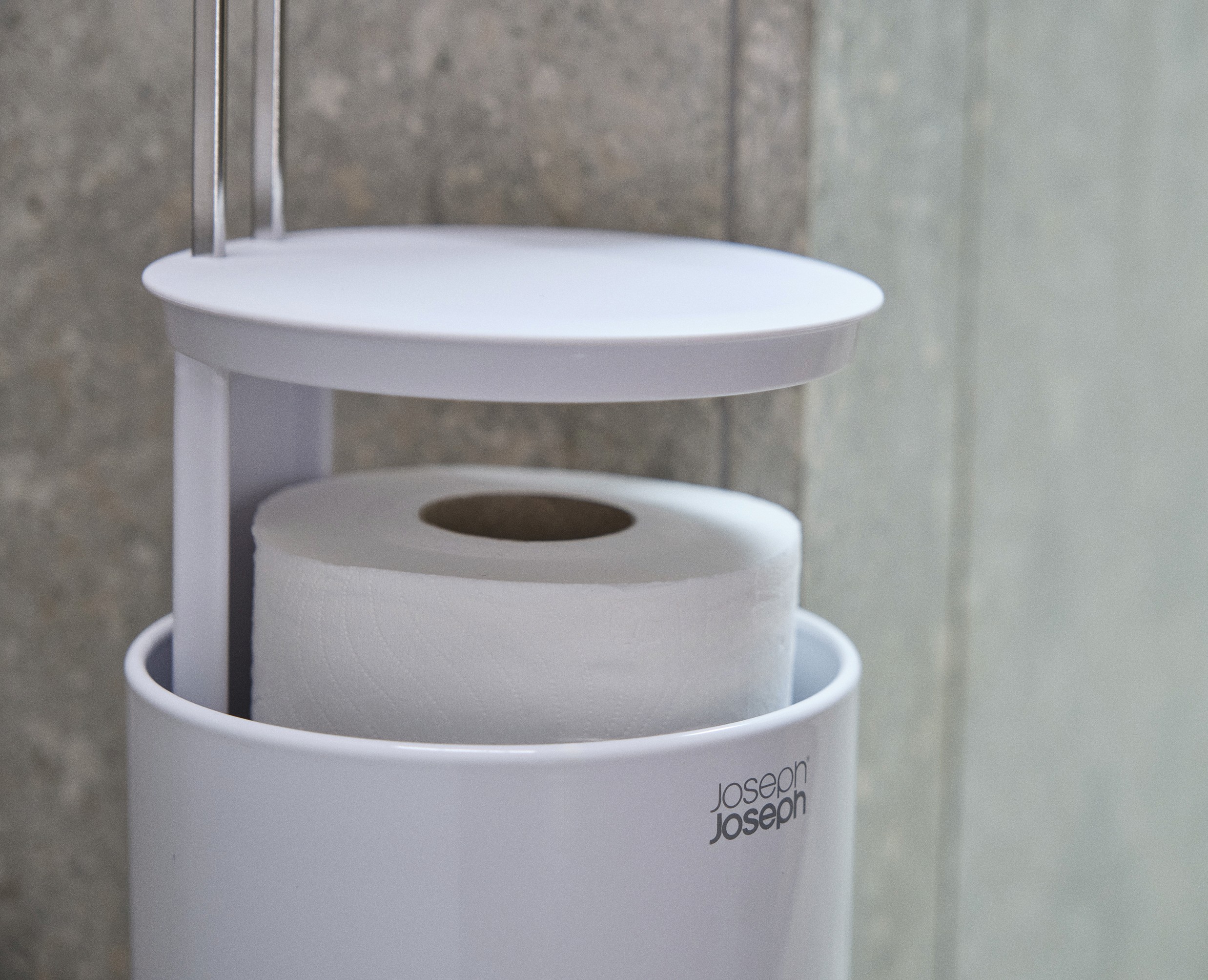 EasyStore™ combines a freestanding roll holder with a discreet, hygienic compartment for up to three spare rolls. The slimline design fits neatly into tight spaces, while the lift-out finger hook makes refilling and restocking quick and easy.